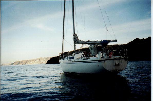 About 4 hours from Santa Barbara by Catalina 30. This view is looking at Anacapa Island.